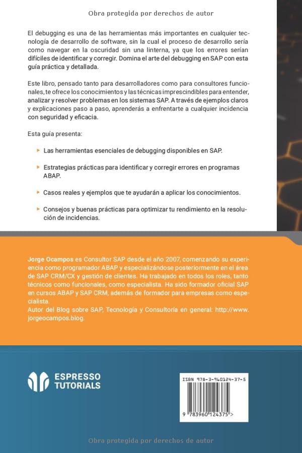Este libro, pensado tanto para desarrolladores como para consultores funcionales, te ofrece los conocimientos y las técnicas imprescindibles para entender, analizar y resolver problemas en los sistemas SAP. A través de ejemplos claros y explicaciones paso a paso, aprenderás a enfrentarte a cualquier incidencia con seguridad y eficacia.